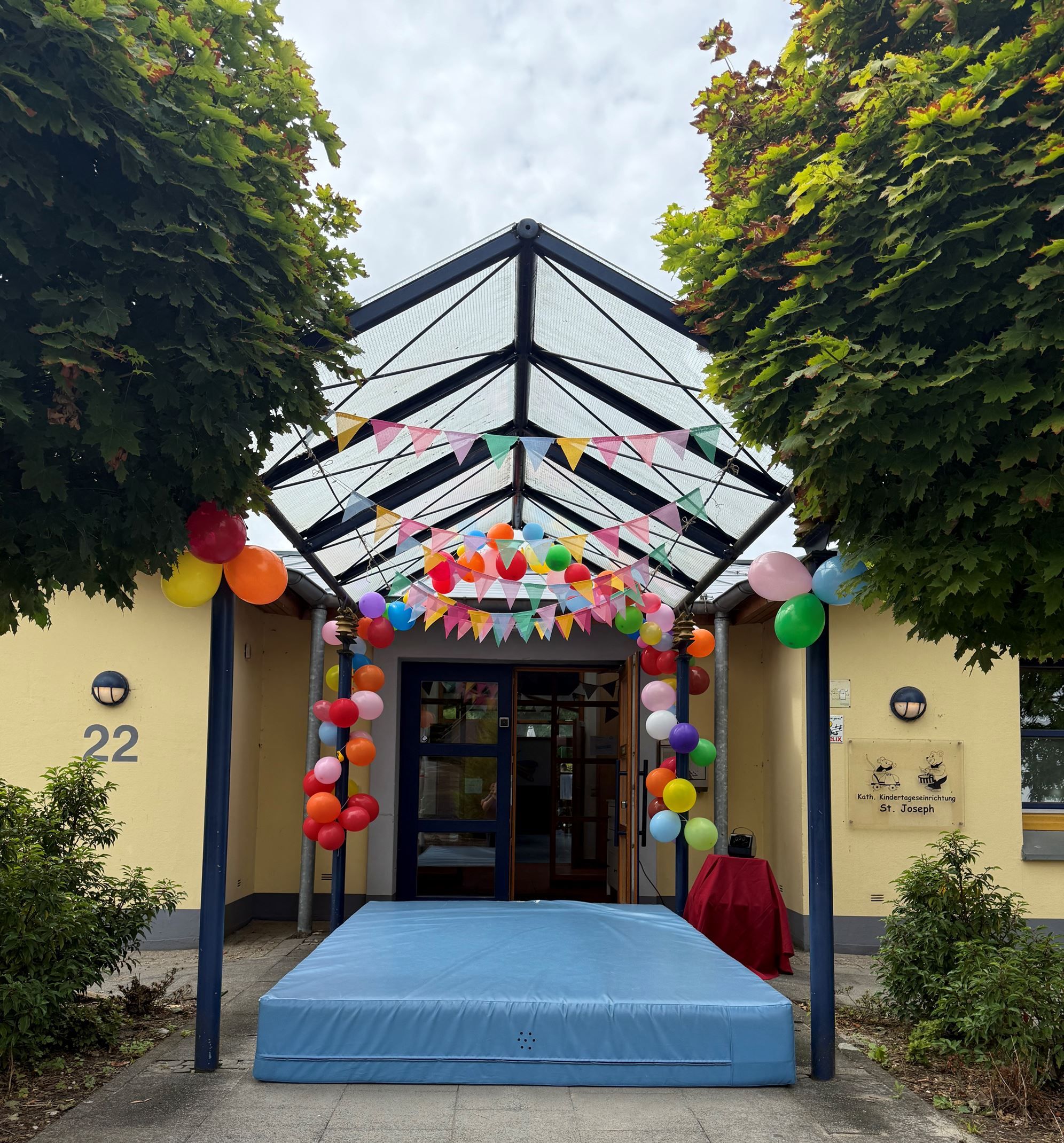 Dieser besondere Tag wurde noch einmal ganz besonders für unsere angehenden Schulkinder gestaltet. Am Mittag wurde für alle Kinder Pizza bestellt und zum Nachtisch gab es ein leckeres Eis. Vor der Kita lag die dicke Matte aus der Turnhalle, und der Eingang war besonders geschmückt.